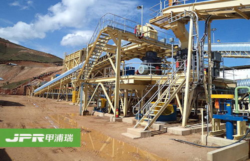 碎石生產(chǎn)線主要由振動給料機、顎式破碎機、反擊式破碎機、振動篩、膠帶輸送機、集中電控等設(shè)備組成。為滿足客戶不同的加工需要,可配備圓錐式破碎機、除塵 設(shè)備等。大塊石料經(jīng)料倉由振動給料機均勻地送進鄂式破碎機進行粗碎,粗碎后的石料由膠帶輸送機送到反擊式破碎機進行進一步破碎;細碎后的石料由膠帶輸送機 送進振動篩進行篩分,篩分出幾種不同規(guī)格的石子,滿足粒度要求的石子由成品膠帶輸送機送往成品料堆;不滿足粒度要求的石子由膠帶輸送機返料送到反擊式破碎 機進行再次破碎,形成閉路多次循環(huán)。成品粒度可按照用戶的需求進行組合和分級,為保護環(huán)境,可配備輔助的除塵設(shè)備。